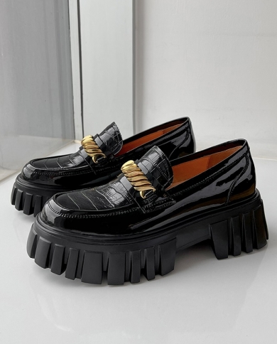 Mezereon Full Grain Leather Shoes Woman Round Toe Platform Pumps