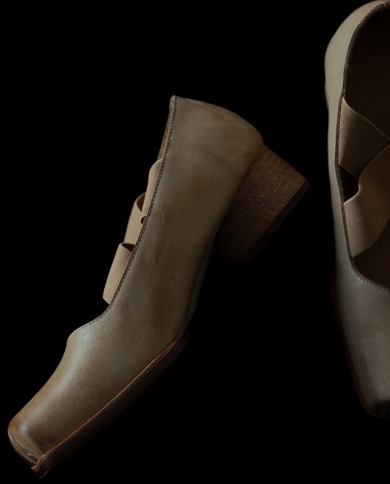 Summer Sandals Female Retro Sandals Buckle Strap Womens Pumps Cowhide
