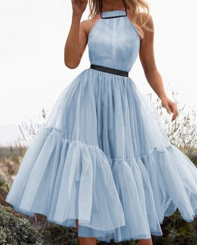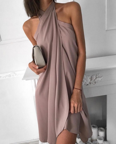 Off Shoulder Cross Halter Party Dress Summer Sleeveless Chic