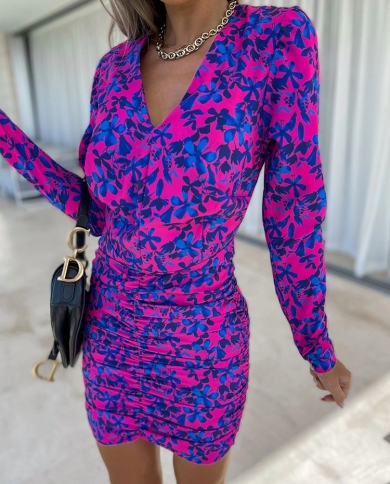 Deep V Neck Long Sleeve Bodycon Dress Women Autumn