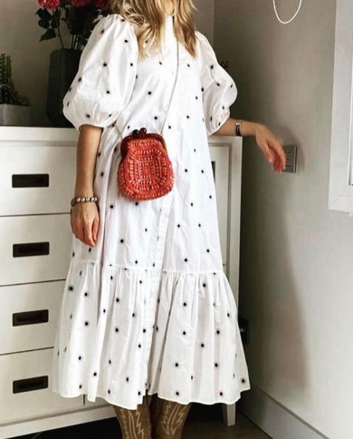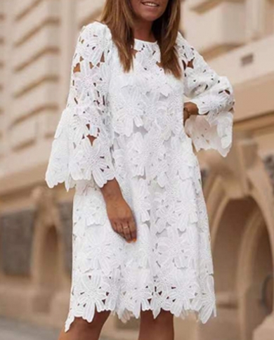 Fashion Autumn Hollow Out Loose Dress Elegant O Neck Embroidery