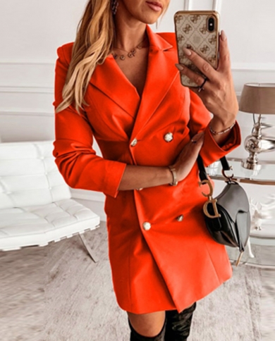 Autumn Casual Solid Double Breasted Dress Women Turn Down Collar