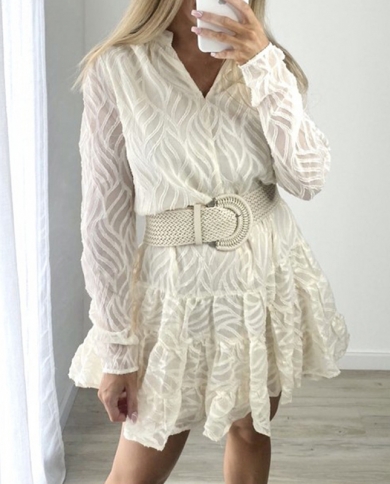 Autumn Casual Long Sleeve V Neck Mini Dress Elegant Turn