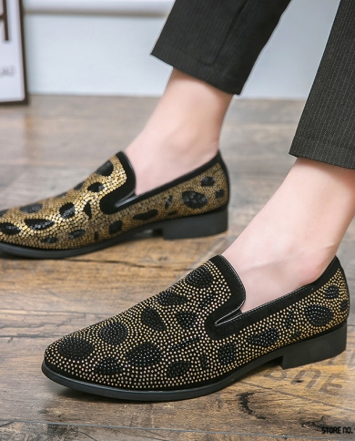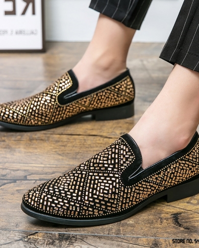 Luxury Designer New Mens Pointed Gold Glitter Rhinestone Wedding Shoes
