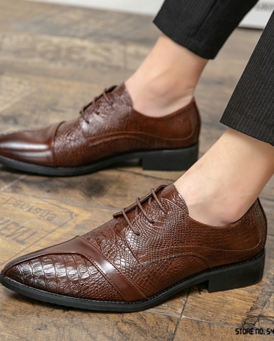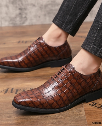 Trendy Alligator Embossed Pointed Lace Up Brogue Oxfords Shoes For