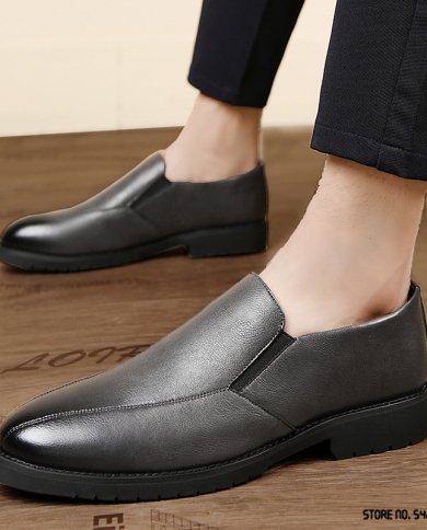 Black Grey Pointed Thick Bottom Slip On Oxford Shoes Men