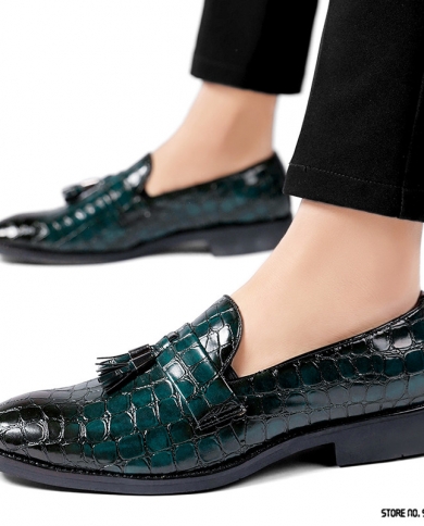 Luxury Designer Pointed Crocodile Embossed Tassel Flats Oxford Shoes Men