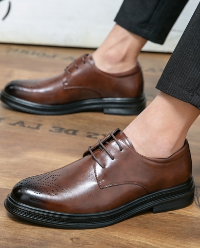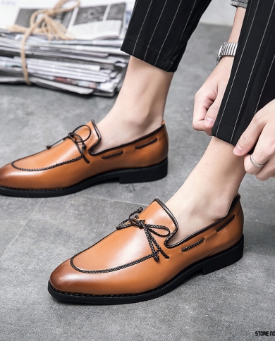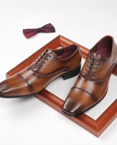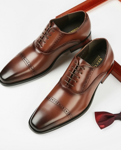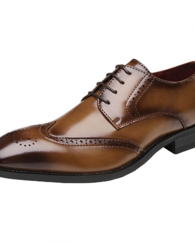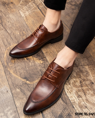 2022 Fashion Pointed Lace Up Brown Oxford Dress Shoes For
