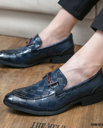 New Trendy Grid Pattern Pointed Wedding Flats Oxford Shoes Men
