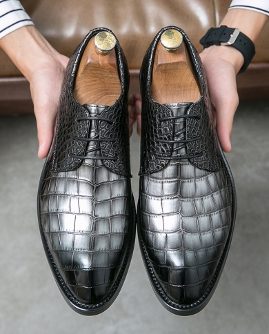 New British Crocodile Pattern Suede Patchwork Shoes For Men Dress