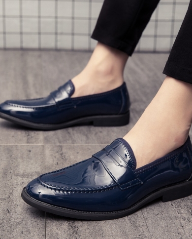 New Luxury Designer Blue Glossy Slip On Shoes Mens Casual