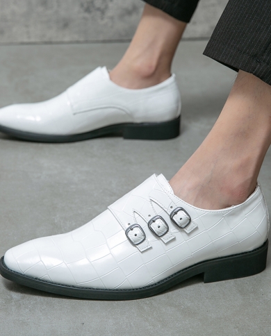 Fashionable Mens White Pointed Monk Strap Slip On Oxford Shoes