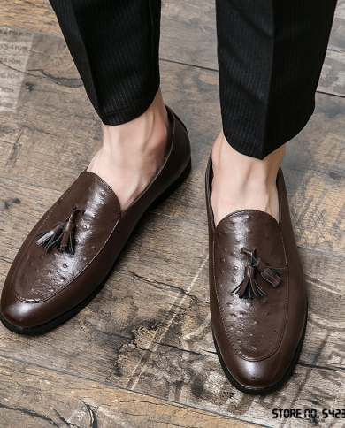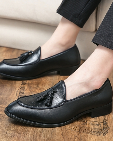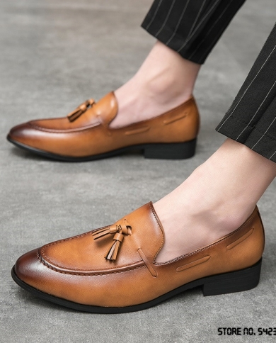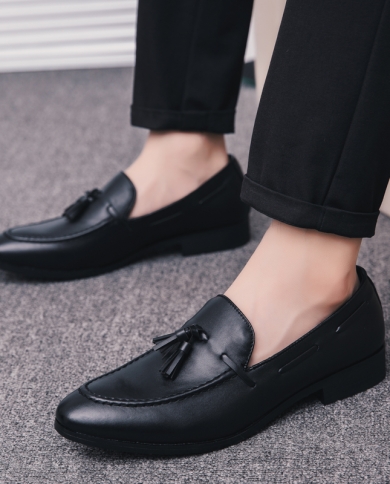 British Fashion Pointed Black Brown Tassel Slip On Shoes Flat