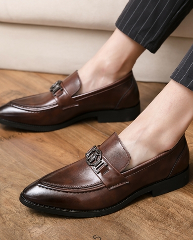 Fashion Novel Designer Brwon Black Slip On Pointed Wedding Oxford