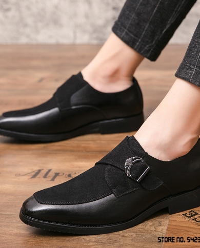New Luxury Suede Leather Belt Buckle Monk Strap Shoes Men