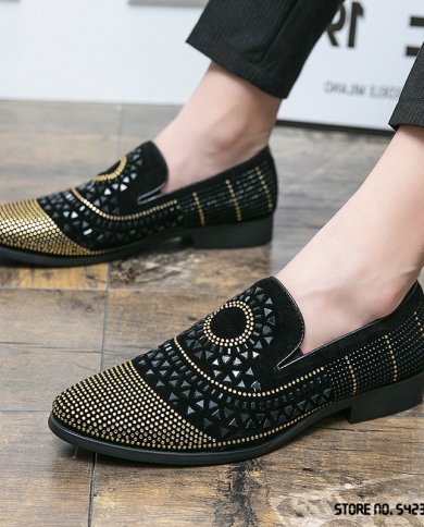 2022 Fashion Designer Men British Luxury Charm Rhinestone Black Oxford