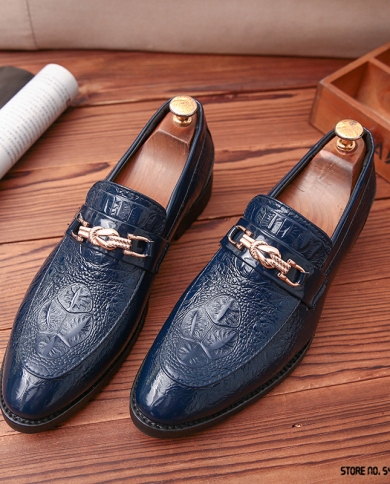New Pointed Crocodile Embossed Metal Button Flats Oxford Shoes Men