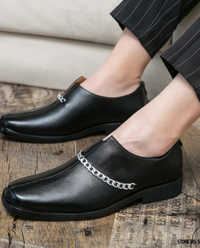 Novelty Black Leather With Chain Oxford For Men Casual Gentleman