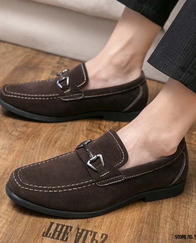 New British Gentleman Designer Pointed Suede Slip On Business Oxford