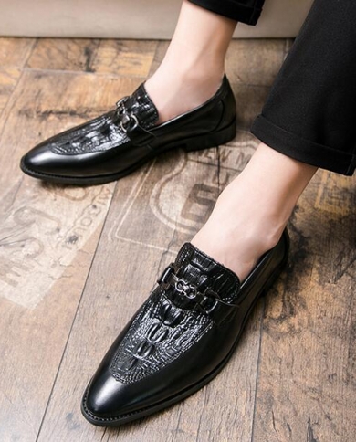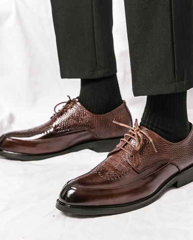 Mens Wedding Pointed Toe Crocodile Pattern Oxford Shoes Male Dress