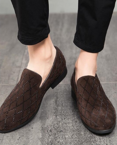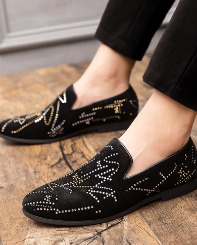 New Fashion Men British Rhinestone Cross Slip On Oxford