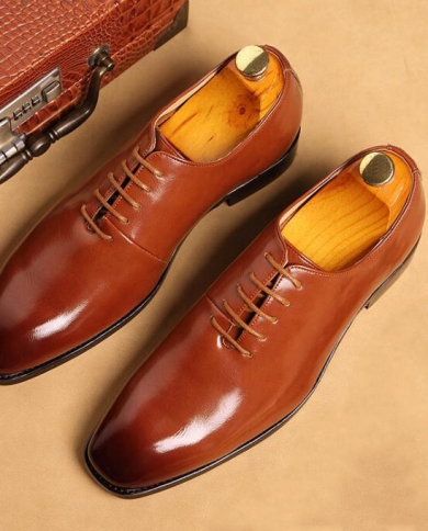 New Luxury Fashion Groom Lychee Grain Leather Wedding Shoes Men
