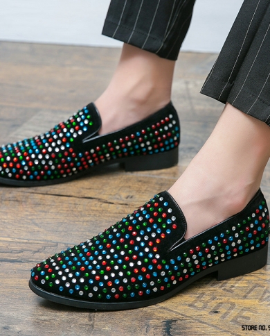 Luxury Designer Colorful Rhinestones Pointed Flats Oxford Shoes Men Casual