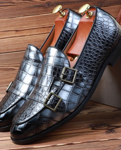 Luxury Crocodile Pattern Split Leather Monk Strap Shoes For Men