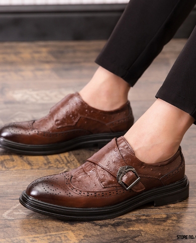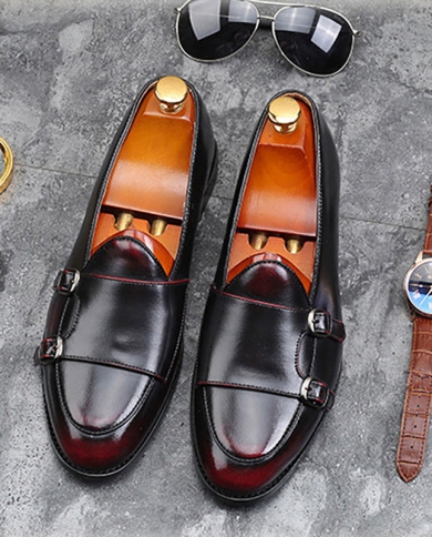 Luxury Designer Pointed Monk Strap Black Brown Shoes Flat For
