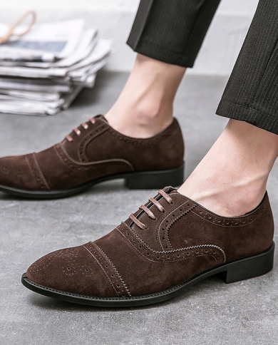 New Luxury Designer Men British Retro Suede Pointed Brogue Oxford
