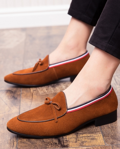 Luxury Designer Pointed Suede Bowtie Shoes Mens Casual Oxford