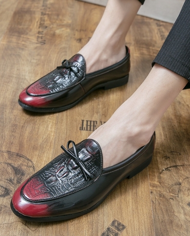 Fashion Men Shoes Tassel Braided Pattern Leather Shoes Slip On