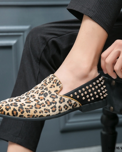 New Arrival Mens Leopard Pattern Rivet Punk Oxfords Casual Moccasins