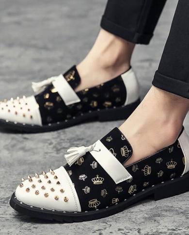 New British Fashion Mens Crown Pattern Pointed Rivet Tassel Oxford