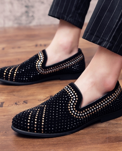 New Arrival Men Glitter Charm Rhinestone Slip On Oxford Formal