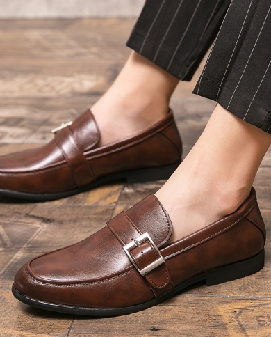 Fasion Luxury Designer Belt Buckle Slip On Leather Shoes For