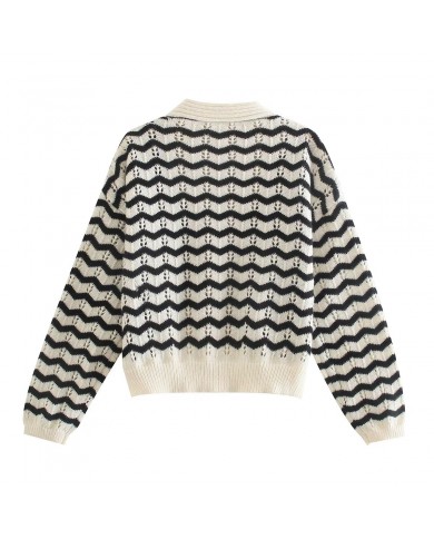 Ladies New Wave Pattern Casual Knit Sweater Jacket