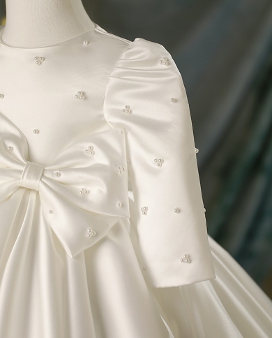 Childrens Dress New Satin Long-sleeved Trailing Princess Dress Childrens Wedding