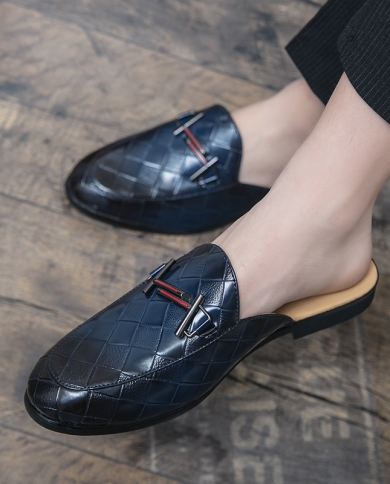 Summer Half Slippers For Mens Embroidered Leather Youth Fashion Men