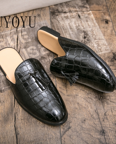 Mules Black Shoes Men Half Genuine Leather For Men Fashion