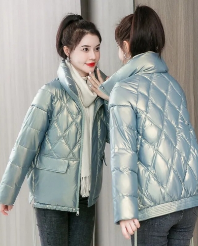 Fashion Parkas Winter Jacket Womens 2022 New Glossy Cotton Padded