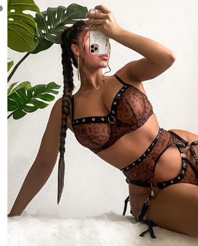 Ellolace Leopard Sensual Lingerie Brown Outfits See Through