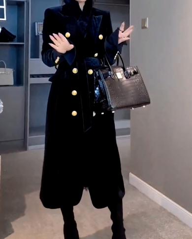 Velvet Trench Coat Autumn Winter 2022 New Double Row Belt